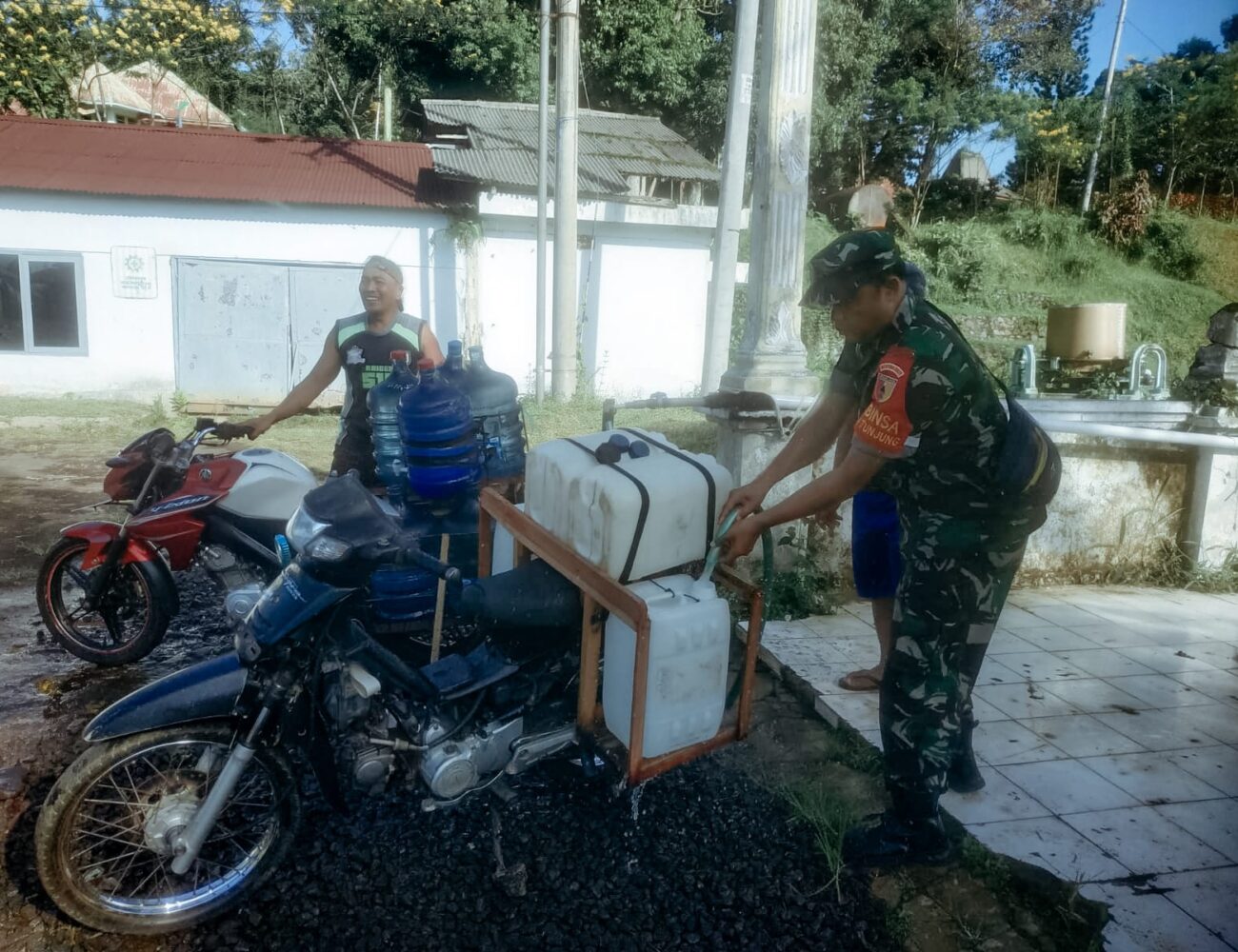 Sembari Komsos, Babinsa Gucialit Bantu Warga Binaan Ambil Air Bersih