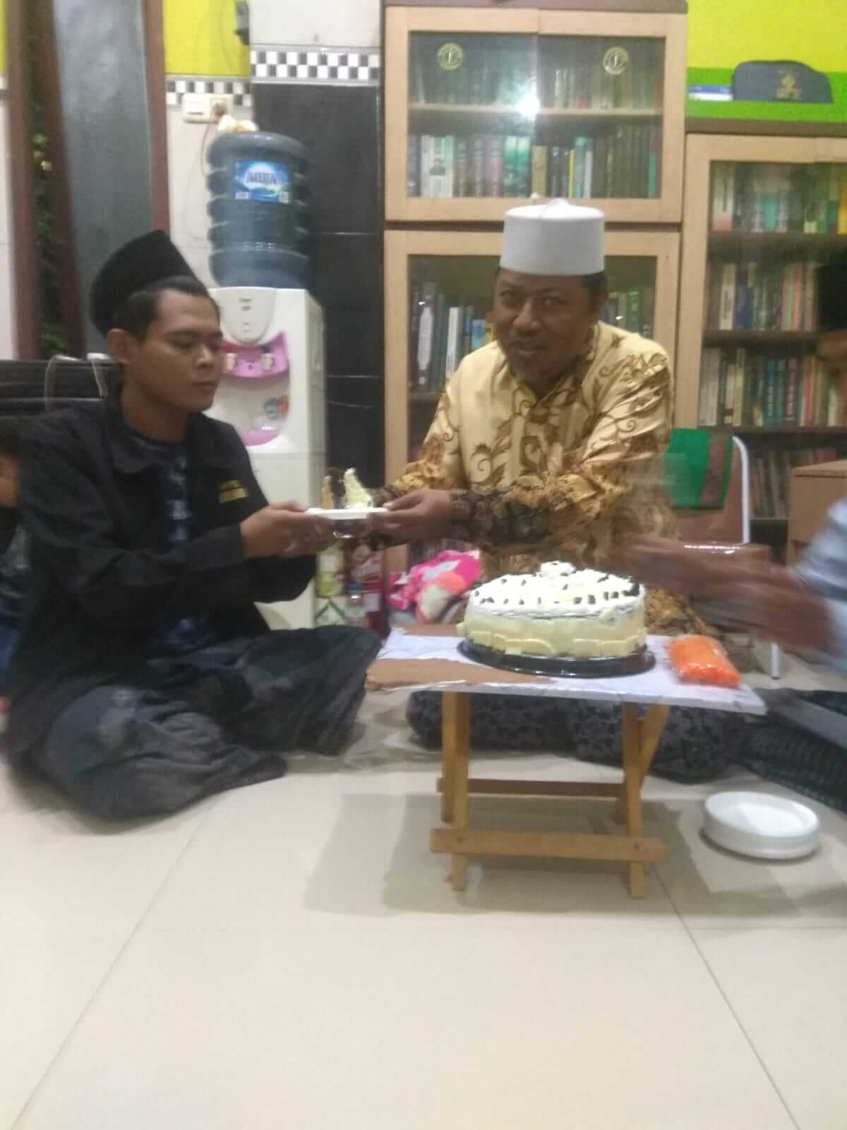 Jamaah dan santri, serta undangan yang hadir yang sangat antusias ini akhirnya menyaksikan momen yang sangat terharu saat ayahanda KH. Imam Royani saat memberikan kue tart kepada putranya Gus Hilmi dan dilanjutkan membagikan kepada jamaah dan undangan yang hadir. Hidangan yang sederhana serta minuman sebagai pelengkap kemeriahan acara ini.