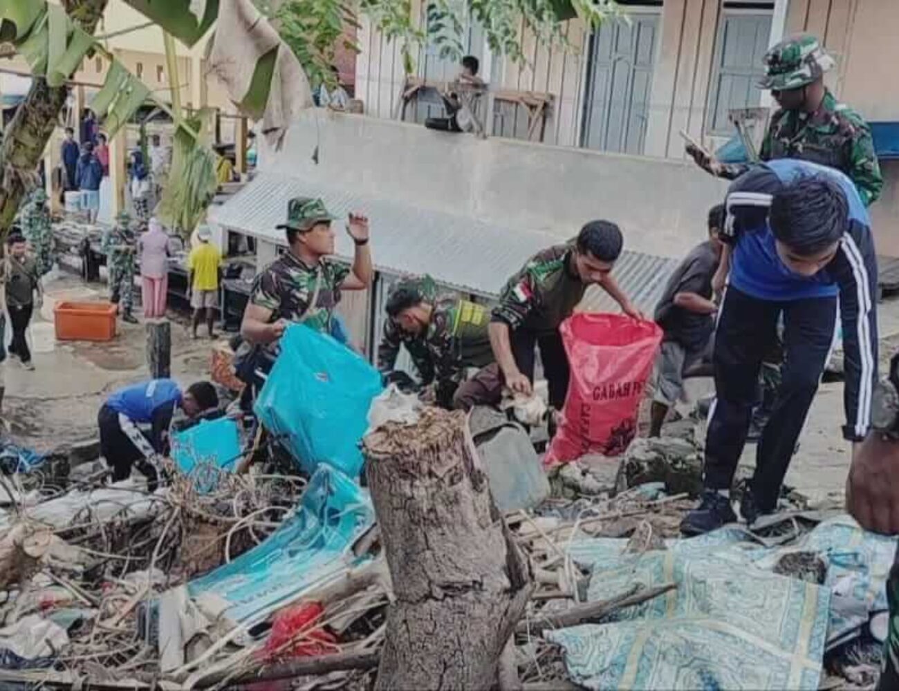 Anggota Gabungan TNI-POLRI, Pemerintah Daerah dan Masyarakat Laksanakan Bhakti Sosial Pembersihan Lingkungan Pasar Rakyat