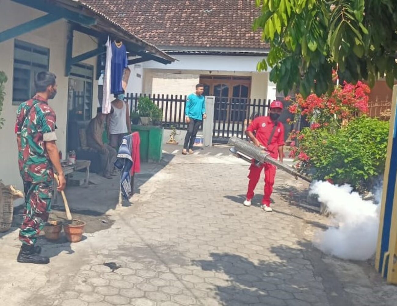 Cegah Berkembangnya Nyamuk, Babinsa Kelurahan Rogotrunan Pendampingan Giat Foogging