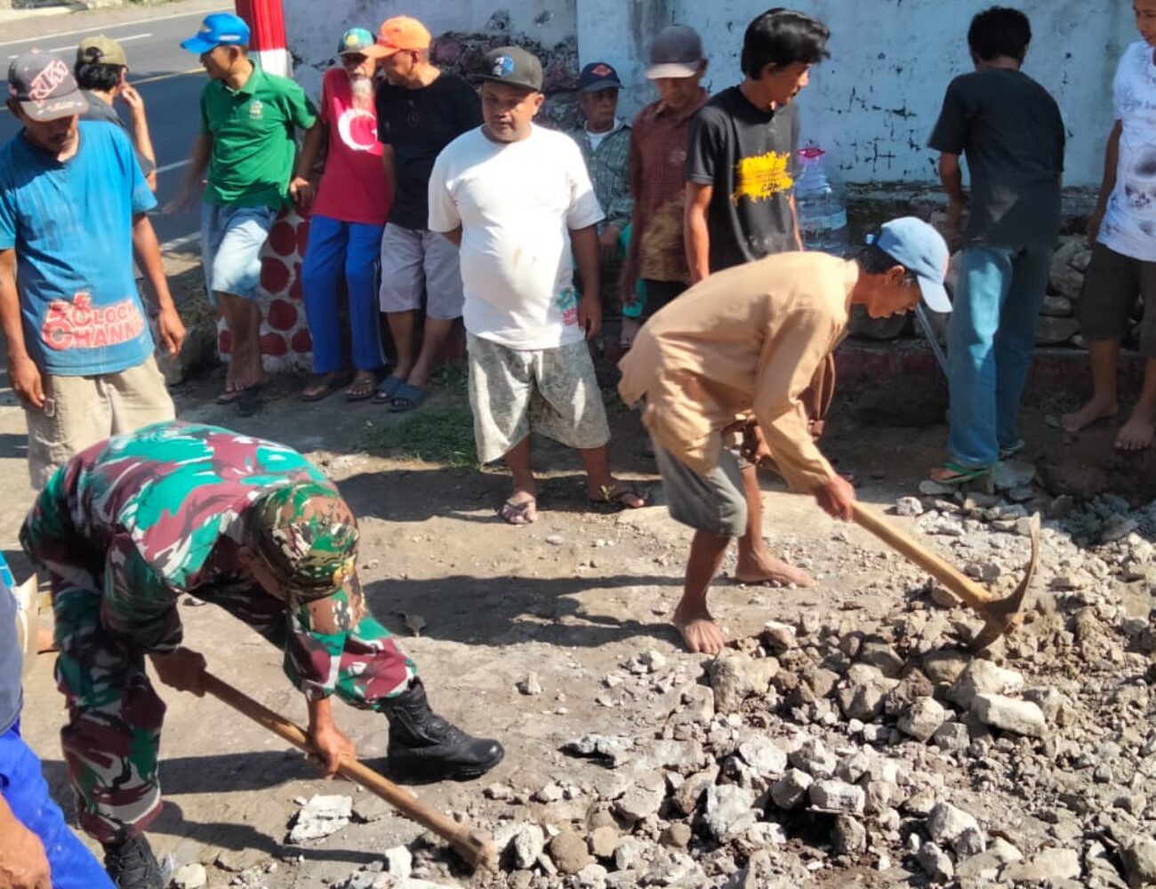 Gotong Royong, Babinsa Klakah Bersama Warga Kerja Bakti Pemerataan Jalan Dusun