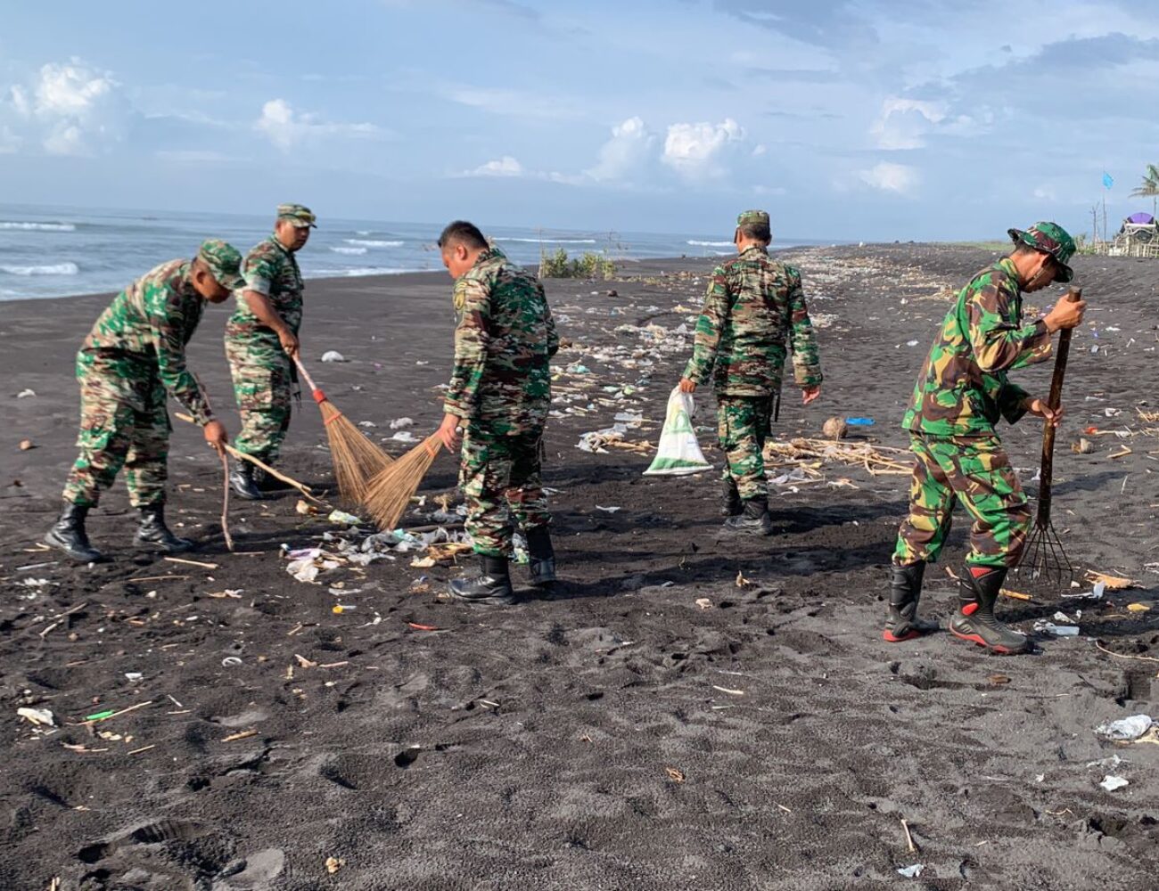 Peduli Lingkungan, TNI Koramil Pasirian Bersama Warga Bersihkan Sampah Pantai Watu Pecak