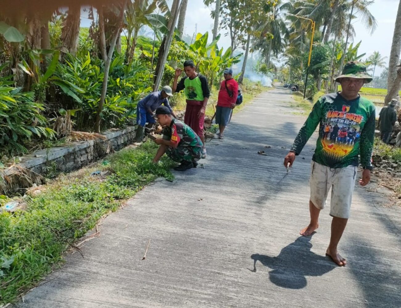 Kemanunggalan Bersama Warga, Babinsa Kloposawit Laksanakan Kerja Bakti