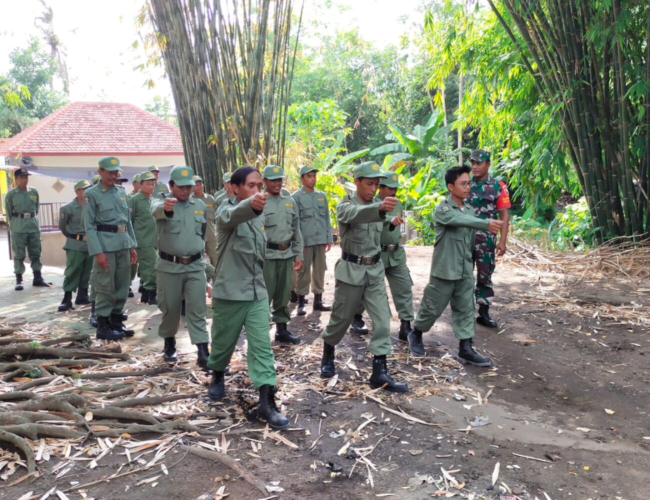 Jelang Pemilu, Babinsa Jatisari Laksanakan Giat Pelatihan Satlinmas