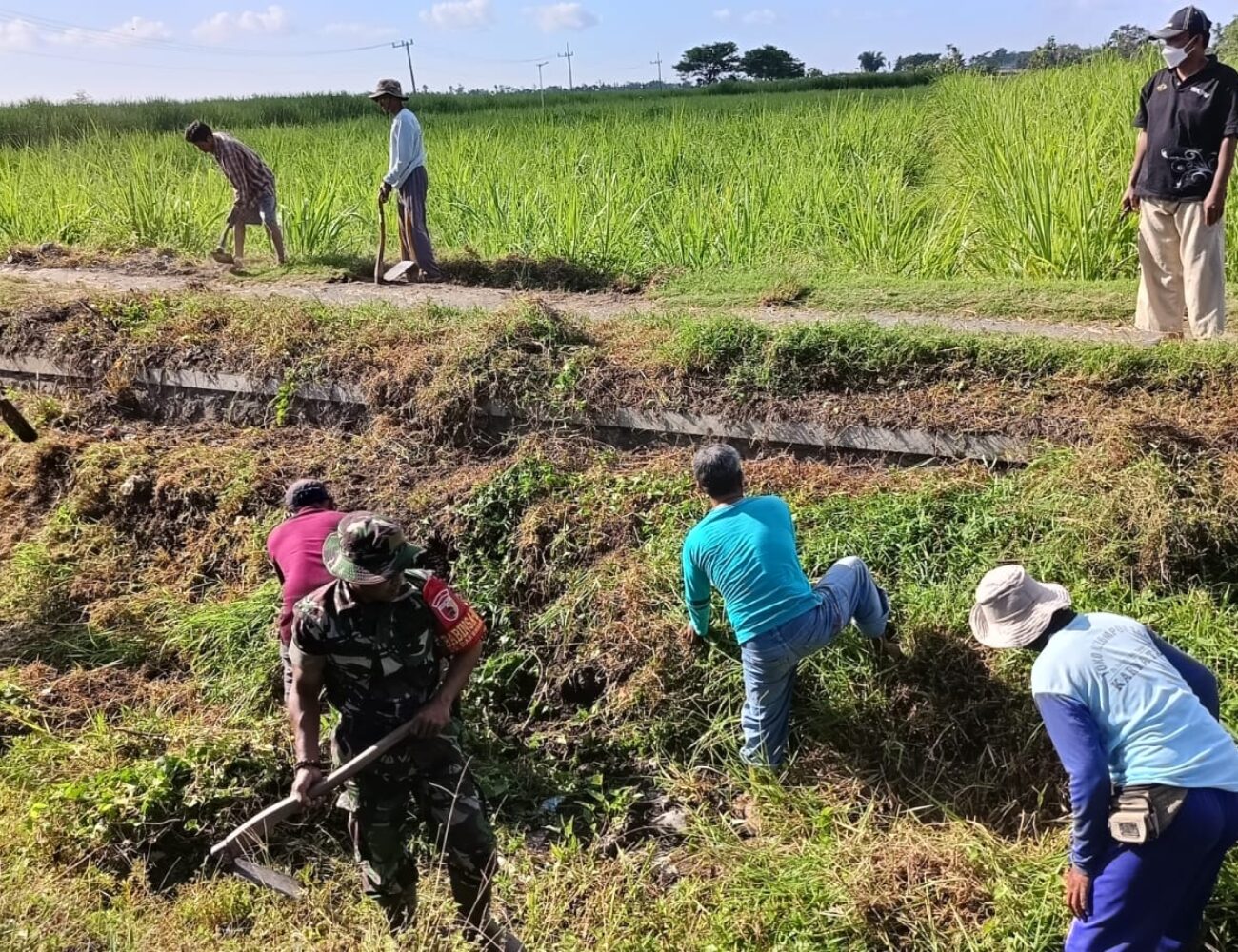 Babinsa Darungan Bersama Pemdes, Giatkan Kerja Bakti Rehabilitasi Sungai Sempu