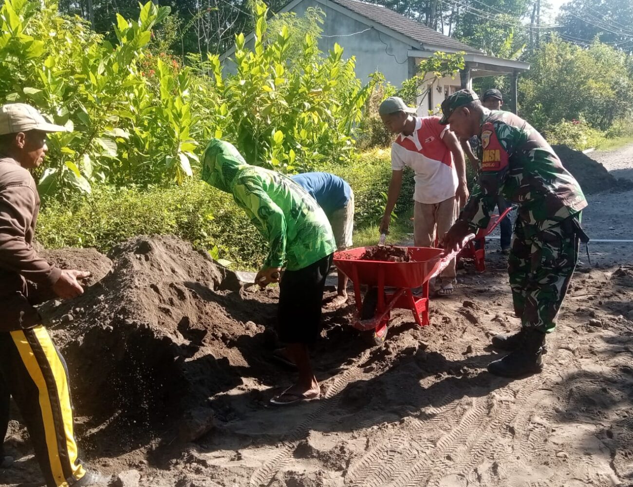 Kawal Program Desa, Babinsa Kedungrejo Laksanakan Pendampingan Pavingisasi Jalan Dusun