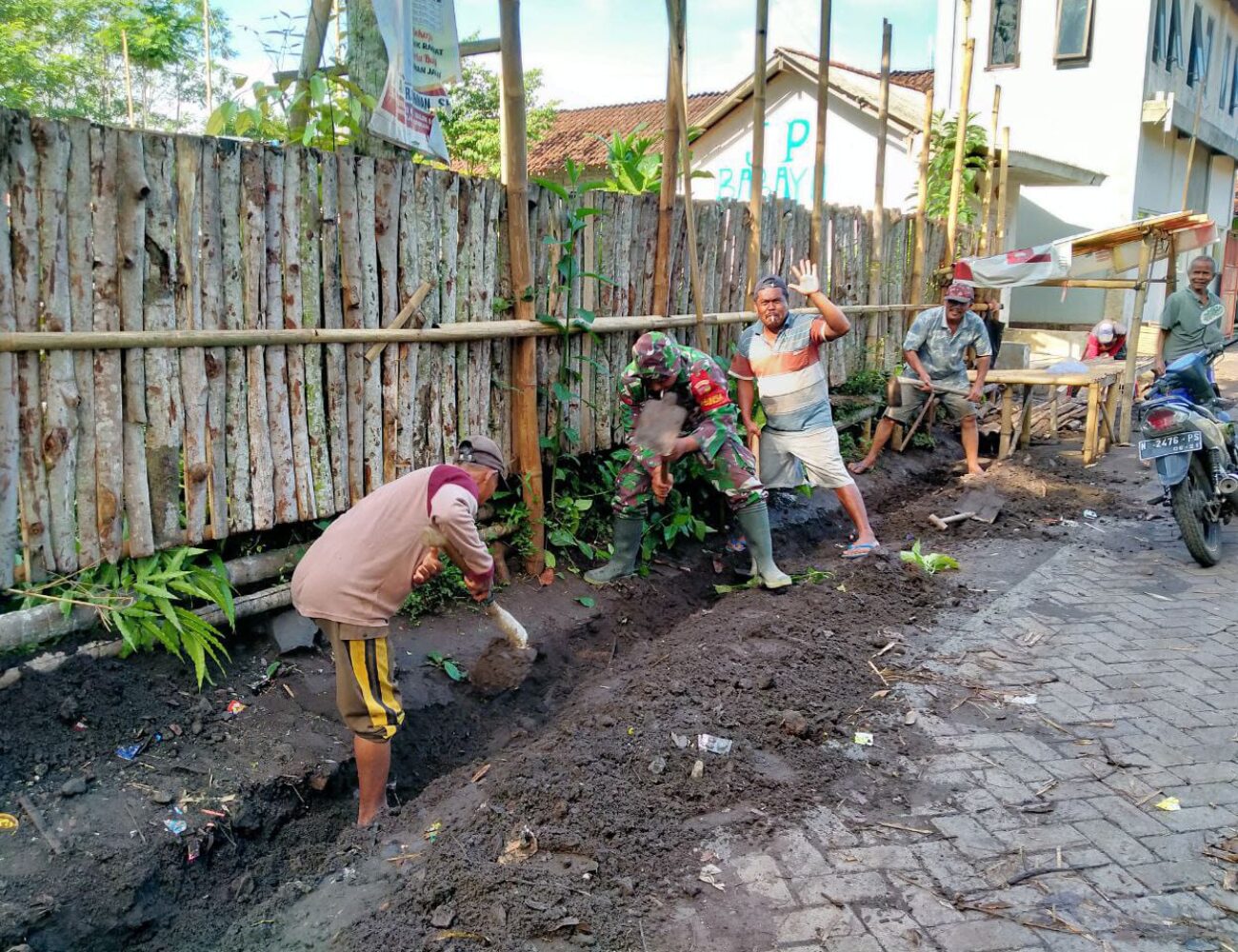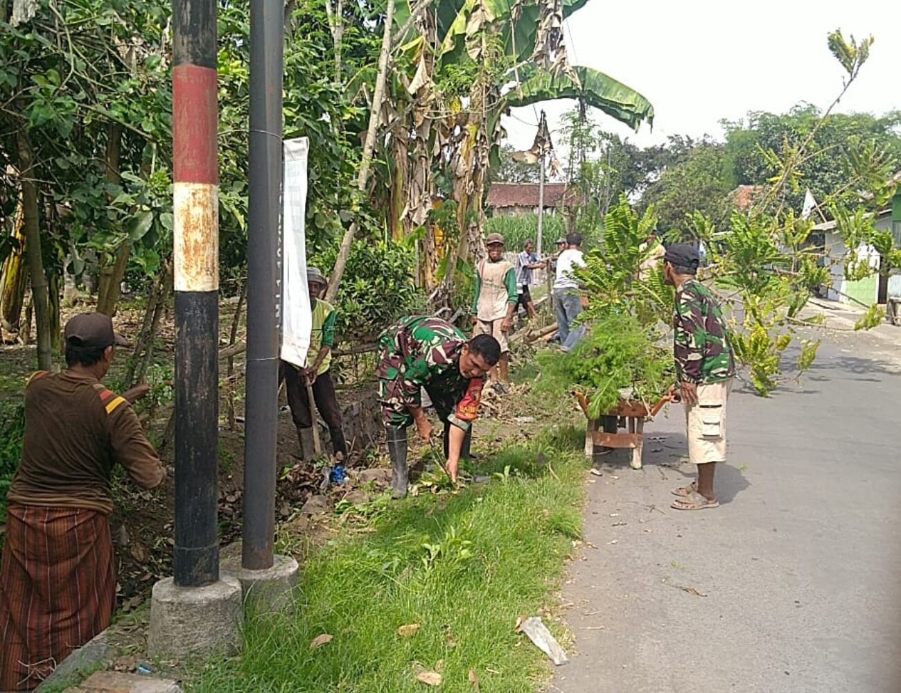 Bersih lingkungan, Babinsa Uranggantung Koramil 0821/02 Sukodono Serda Sul’aidi, bersama warga