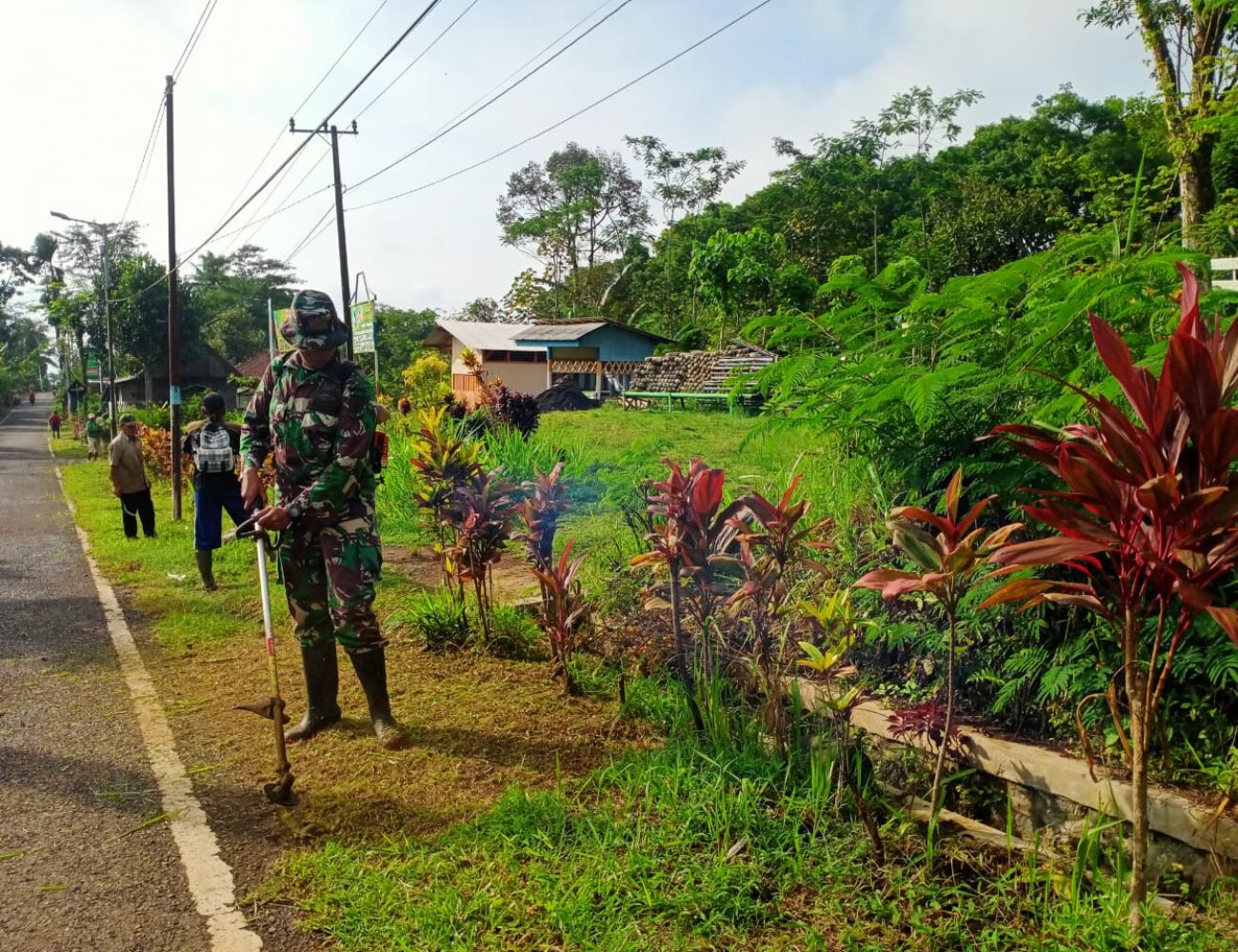 Pelihara Akses Jalan, Babinsa Gucialit Bersama Warga Kerja Bakti Pembersihan Jalan