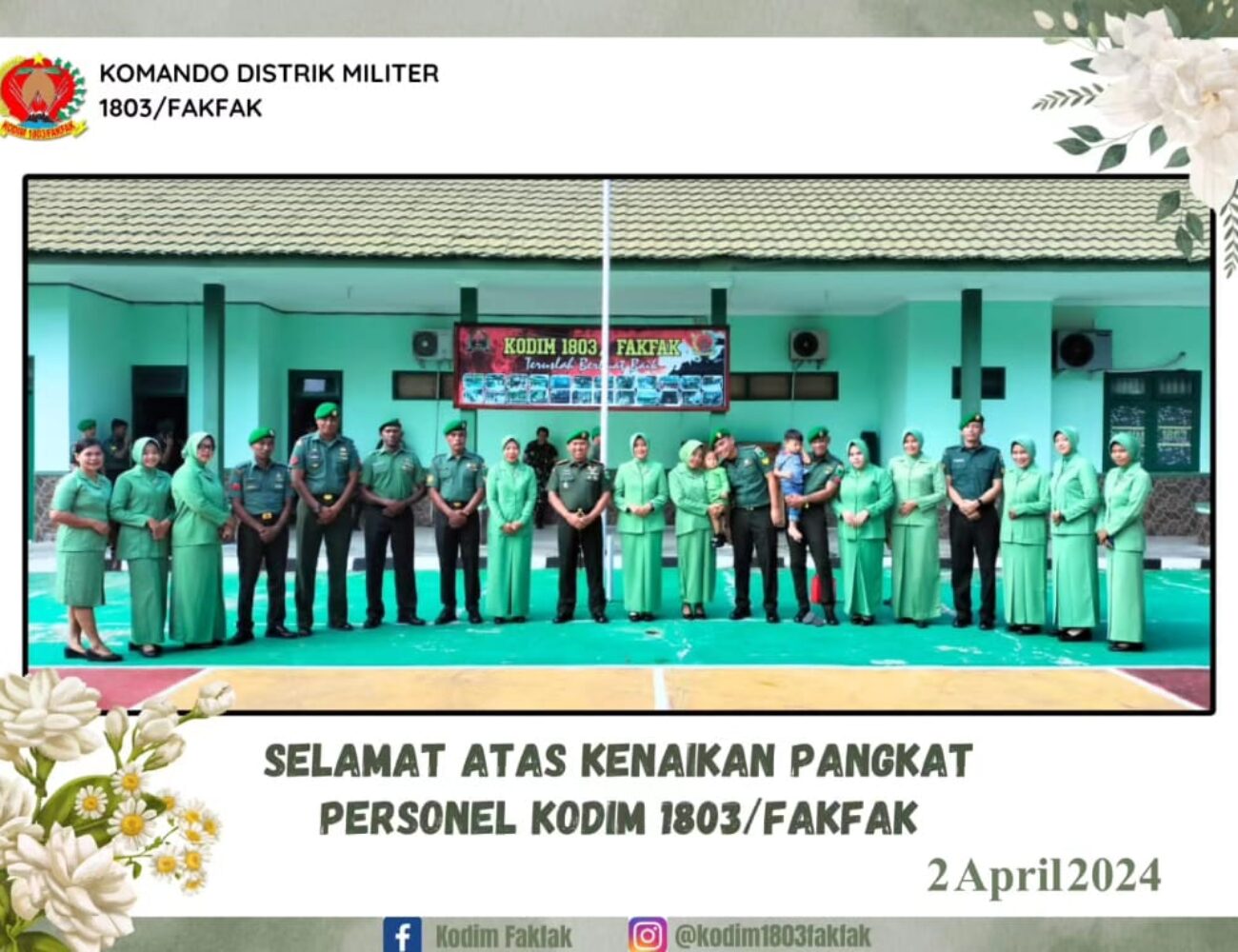 Dandim 1803/Fakfak Pimpin Kenaikan Pangkat 11 Anggota Kodim 1803/Fakfak