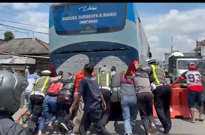Didasari Kebersamaan, Polisi dan Warga Gotong Royong Atasi Bis Mogok Warnai Arus Mudik