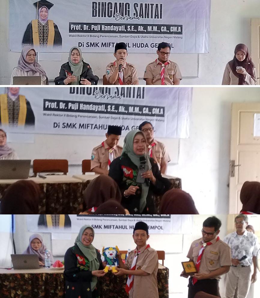 Berkait dengan perihal tersebut diatas Ibu Profesor Dr Hj Puji Handayati SE,AK, MM, CA, CMA sebagai salah satu Profesor dalam giat tersebut , pada hari sabtu tanggal (04-10-2025) Gebyar giat Profesor Menginspirasi dengan tema Bincang Santai memakai methode dialogis di lembaga pendidikan SMK Miftahul Huda Jeruk Purut kecamatan Gempol kabupaten Pasuruan yang diikuti ratusan orang peserta didik.