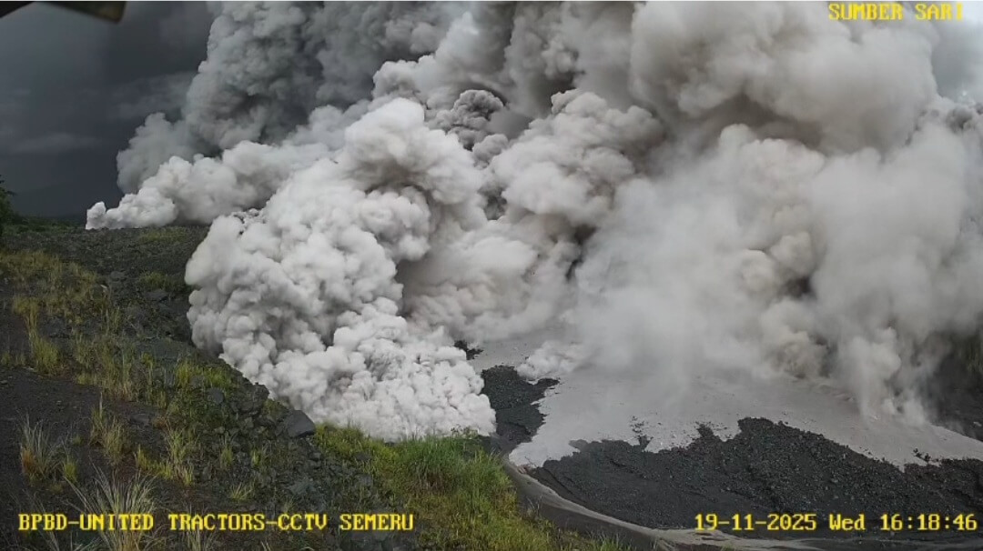 Harianmerdekapost.com, Lumajang, Jatim – Terjadi guguran awan panas gunung Semeru dengan jarak luncur sudah mencapai 11 km, kekuatan amplitudo maksimum ( amak) 40 mm sedang terjadi di gunung Semeru kabupaten Lumajang sejak pukul 14:13 WIB pada tanggal 19/11/2025 .