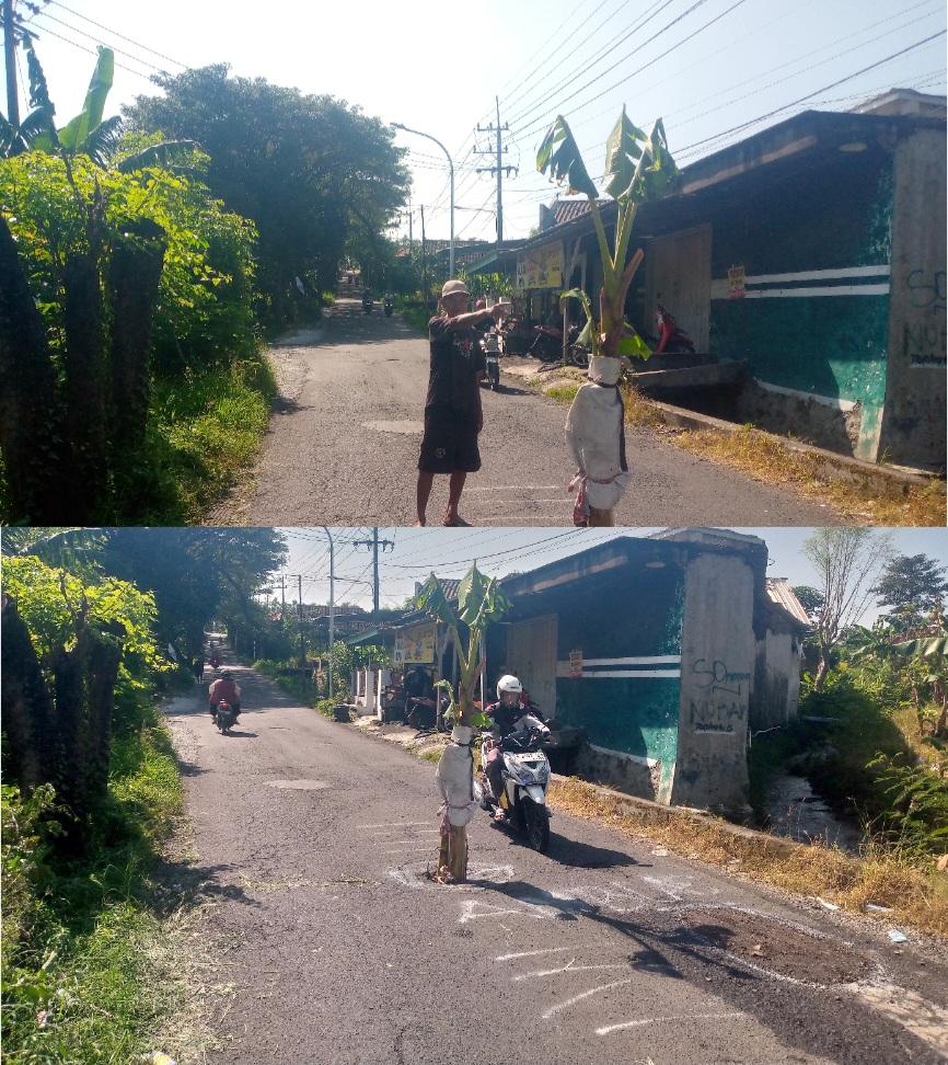 Kemudian pada hari sabtu tanggal ( 04-04-2026) jam 06 30 wib beberapa warga dusun Kabunan memberi tanda menanam pohon pisang, Hal ini dilakukan demi menghindarkan terjadinya kecelakaan dan keselamatan jiwa para pengguna jalan terutama yang melintas pada ruas jalan kabupaten Pasuruan.