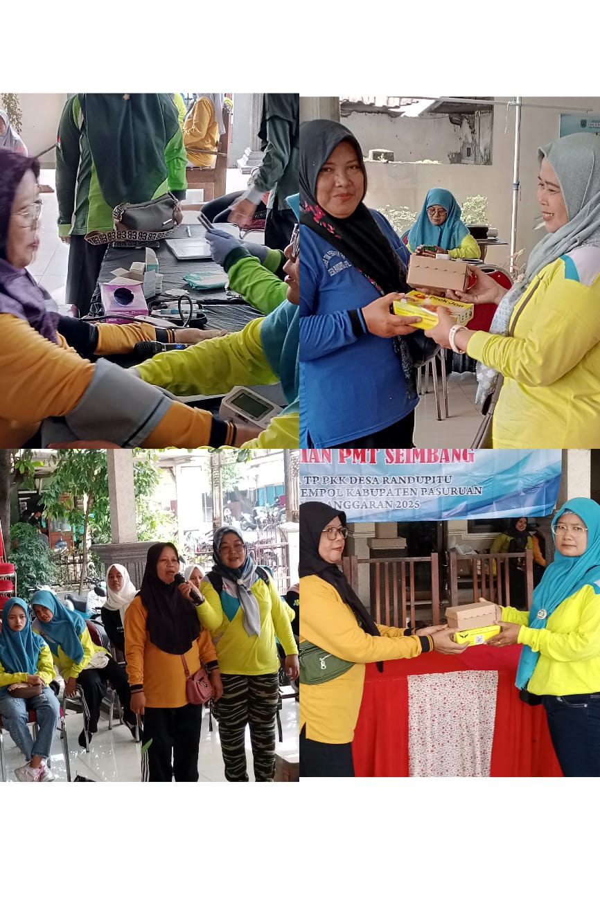 Berkait dengan perihal tersebut diatas pada hari minggu tanggal ( 21-12-2025) bertepatan dengan peringatan Hari Ibu, TP PKK desa Randupitu kecamatan Gempol kabupaten Pasuruan Gebyar Senam Sehat , Penyuluhan Kualitas Keluarga Sehat, Pemeriksaan mata gratis dan Pemberian PMT Seimbang yang diikuti oleh semua kader kesehatan se desa Randupitu ( RDS. Balita, Remaja dan Lansia).