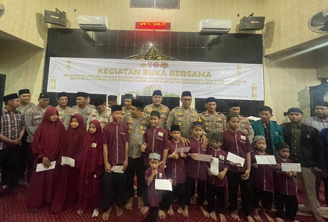 Harianmerdekapost.com, Surabaya, Jatim – Semangat berbagi dan silaturahmi mewarnai bulan suci Ramadan di lingkungan Polres Pelabuhan Tanjung Perak. Tepat pada hari ketujuh Ramadan 1447 Hijriah, Rabu (25/02/2026). Jajaran kepolisian setempat menggelar agenda buka puasa bersama awak media dan mahasiswa, sekaligus menyantuni puluhan anak yatim.