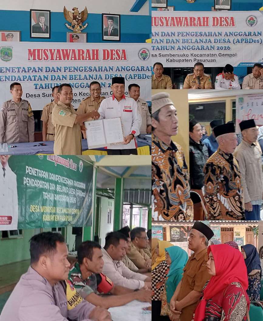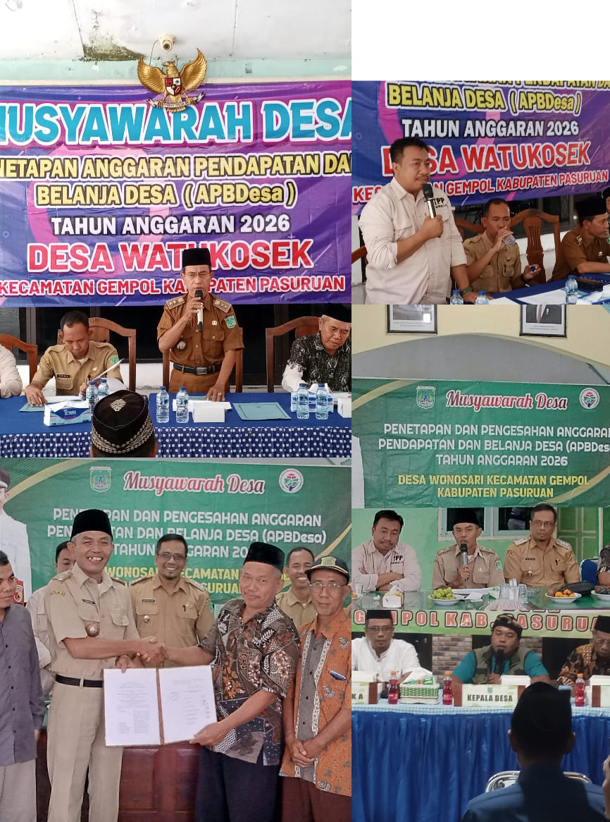 Khusus diwilayah kecamatan Gempol pada hari senen tanggal( 22-12-2025 ) ada 5 desa yang melaksanakan Musdes Penetapan dan Pengesahan APBDes tahun anggaran 2026 yakni Desa Watukosek, Sumber Suko, Wonosunyo, Wonosari dan Kepulungan.