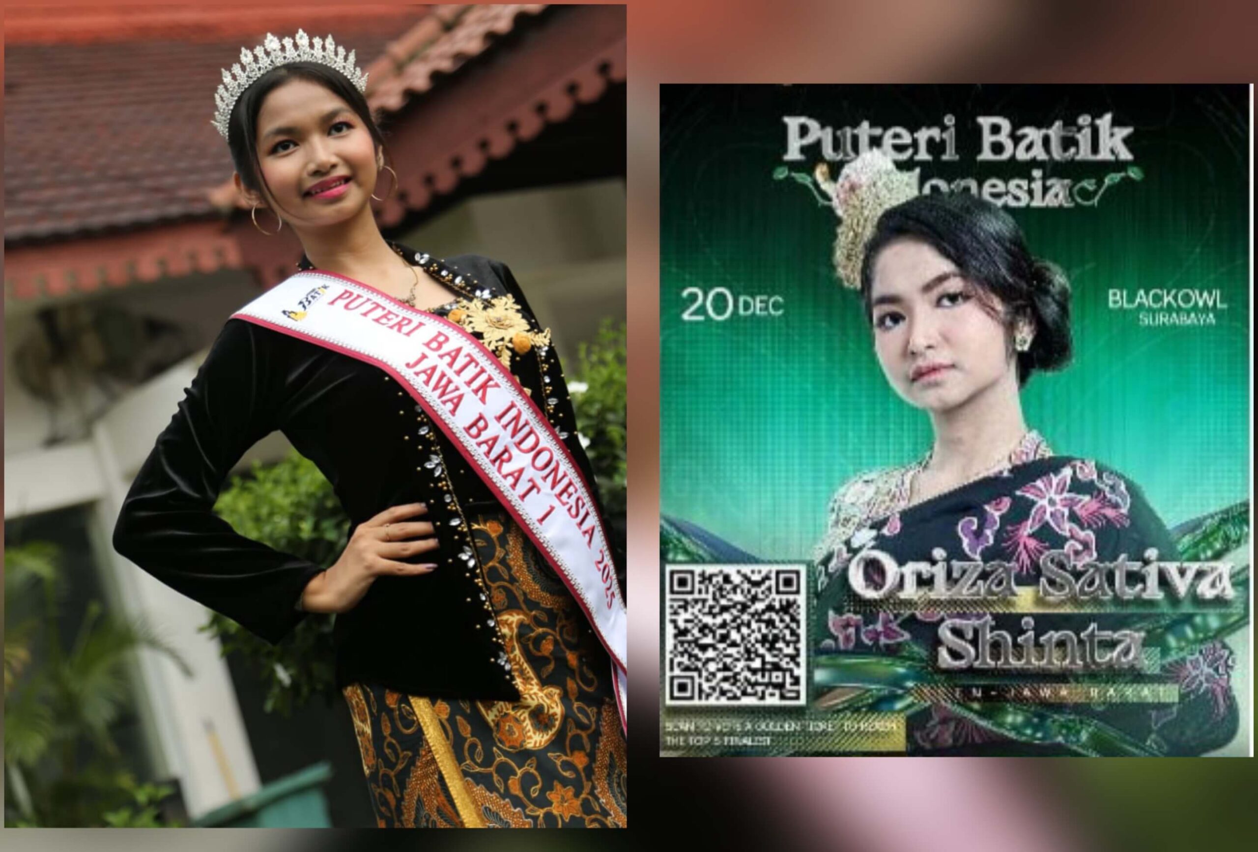 ” Semoga upaya ini membawa hasil juara, membawa nama harum Propinsi Jawa Barat 1 dan Batik Indonesia umumnya. Mohon Vote saya Oriza Sativa, dengan Scan Barcode di foto saya ” harap Oriza Sativa.