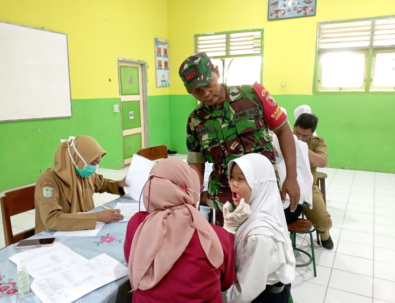 Peningkatan Kualitas Generasi Muda, Babinsa Dawuhan Lor Pendampingan Skrining Kesehatan Anak Sekolah