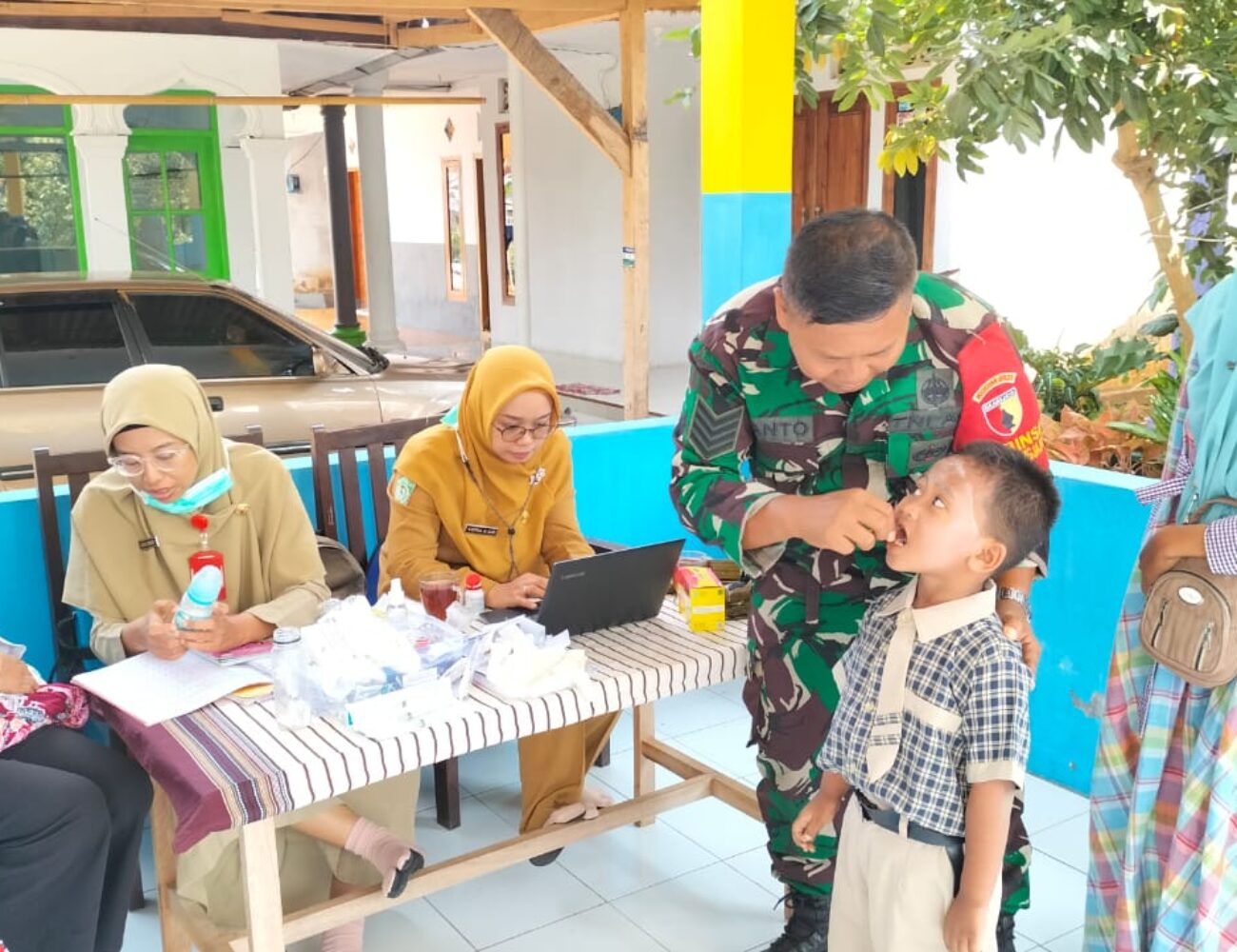 Kepedulian Kesehatan Balita, Babinsa Kedungjajang Dampingi Bidan Desa Kegiatan Posyandu