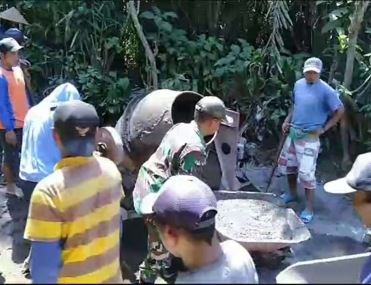 Babinsa Pronojiwo, Bersama Warga Laksanakan Karya Bakti Pembangunan Jalan Rabat Beton