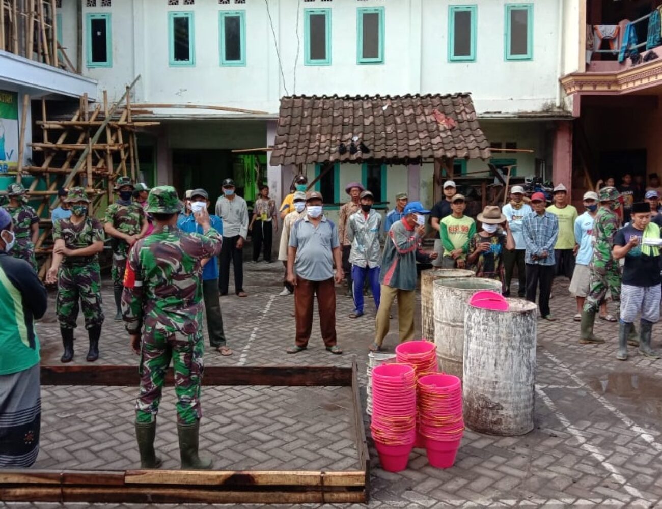 Gotong Royong, TNI Koramil Tekung Bersama Warga Karya Bakti Pengecoran Atap Gedung PP Nurul Huda