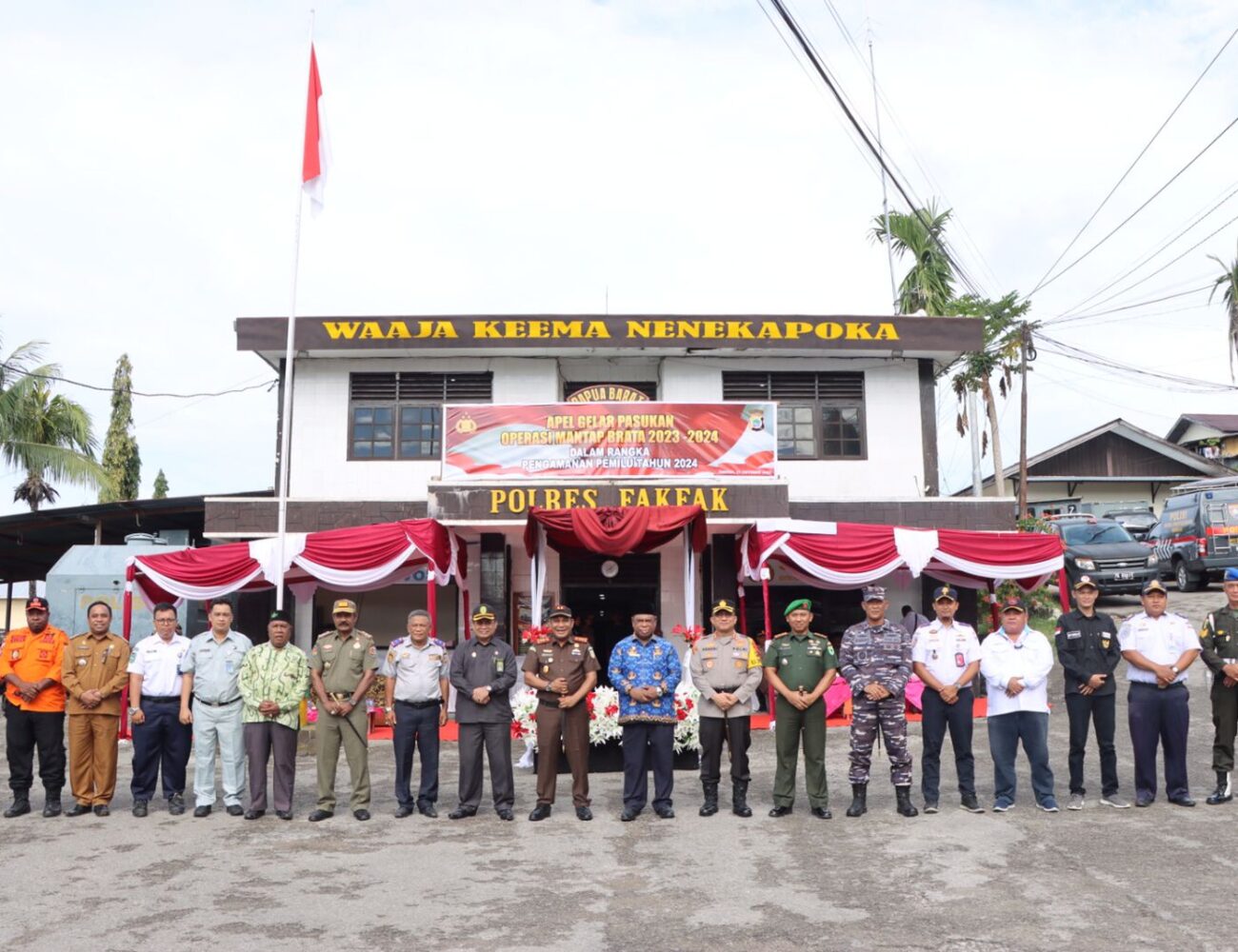 Polres Fakfak Menggelar Apel Gelar Pasukan Operasi Mantap Brata 2023-2024, Sekda Fakfak Bacakan Amanat Kapolri.