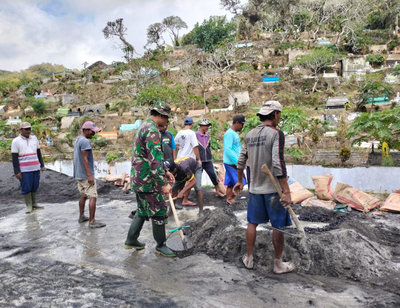 Babinsa Pulorejo Bersama Warga, Gotong Royong Bangun Jalan Rabat Beton