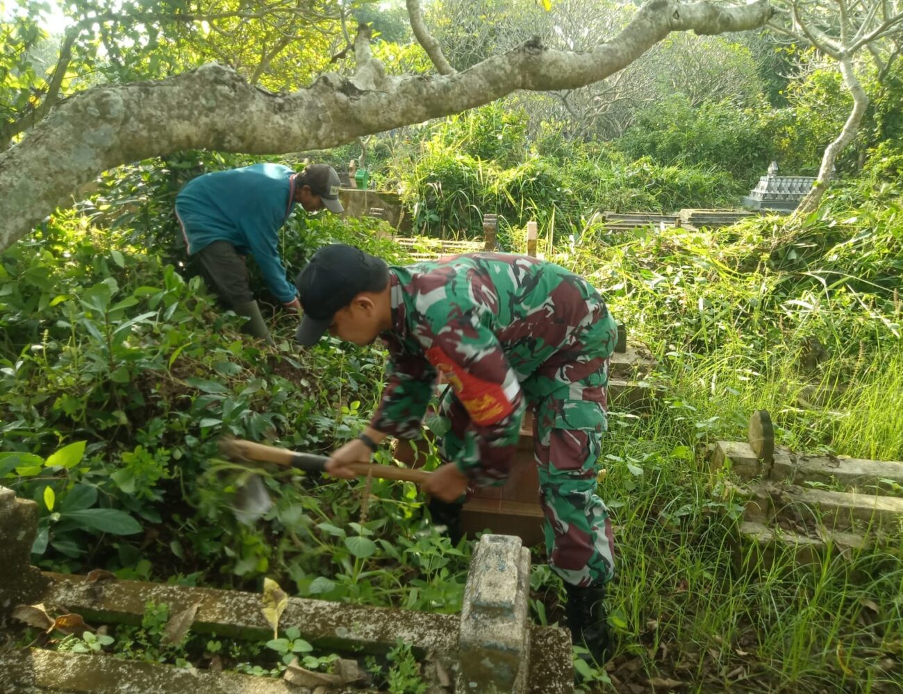 Bina Kebersamaan, Babinsa Padang Bersama Warga Kerja Bakti di Pemakanan Umum