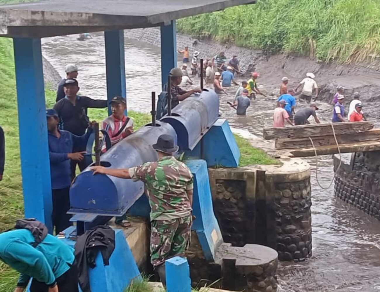 TNI Koramil Tekung Bersama Masyarakat, Kerja Bakti Bersihkan Sungai Repeh