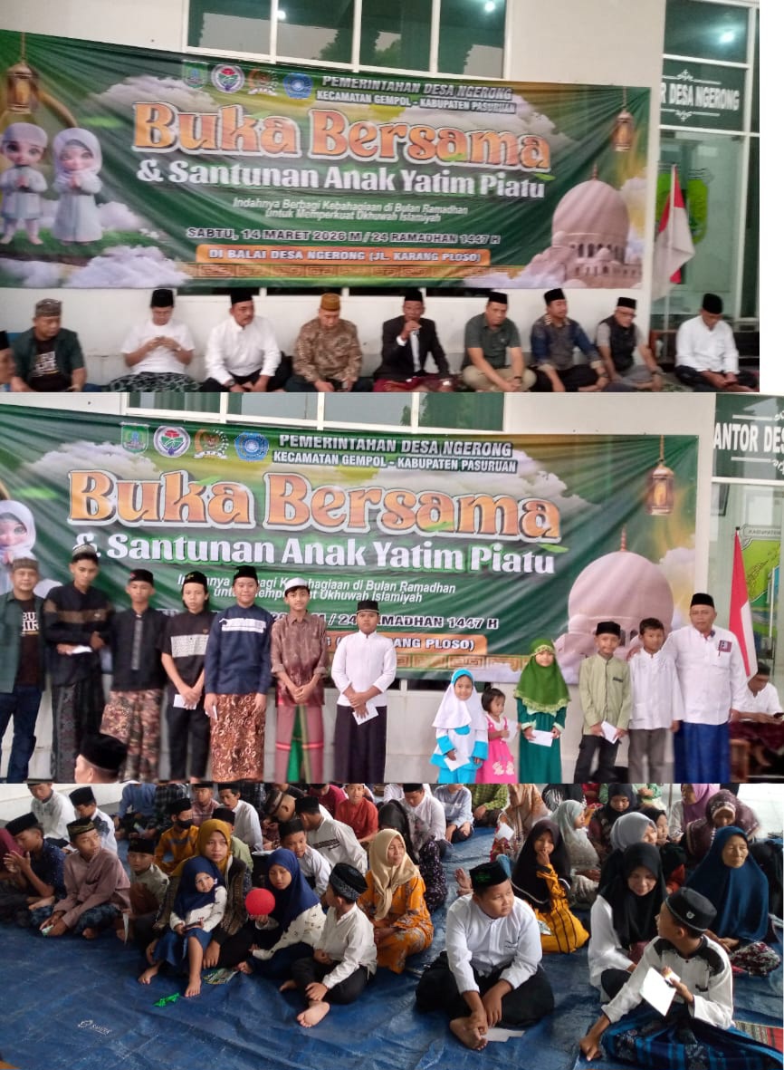 Dalam sambutan singkat yang disampaikan oleh kepala desa Ngerong Bapak H Jemmy Sadiman, beliau menyampaikan bahwa Alhamdulillah pada hari ini pemdes Ngerong dapat menyelenggarakan giat buka bersama dan santunan kepada anak yatim -Piatu sedesa Ngerong . Tuturnya !!
