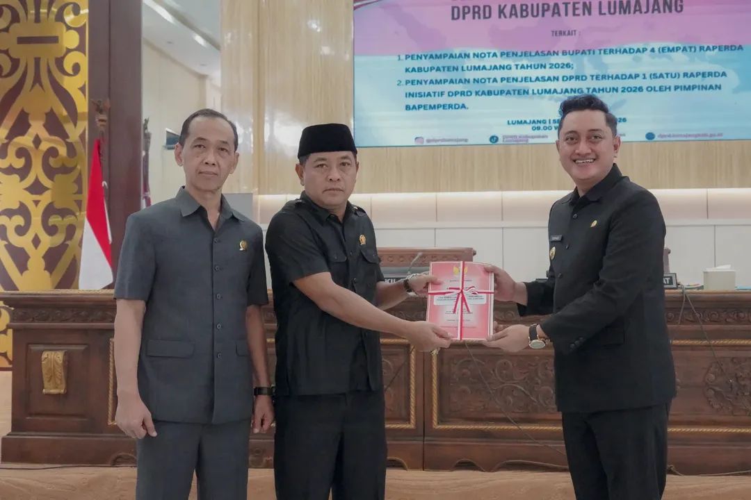 Harianmerdekapost.com.Lumajang. Jawatimur. Rapat Paripurna Dewan Perwakilan Rakyat Daerah (DPRD) Kabupaten Lumajang digelar pada Senin, 13 April 2026. Rapat dipimpin Wakil Ketua III DPRD Kabupaten Lumajang, H. Sudi, serta dihadiri Wakil Ketua II DPRD Kabupaten Lumajang, Solikin, SH., Wakil Bupati Lumajang, Yudha Adji Kusuma, SH., jajaran Forkopimda, serta perangkat daerah terkait. Agenda utama rapat paripurna ini adalah penyampaian nota penjelasan terhadap Rancangan Peraturan Daerah (Raperda) Tahun 2026.