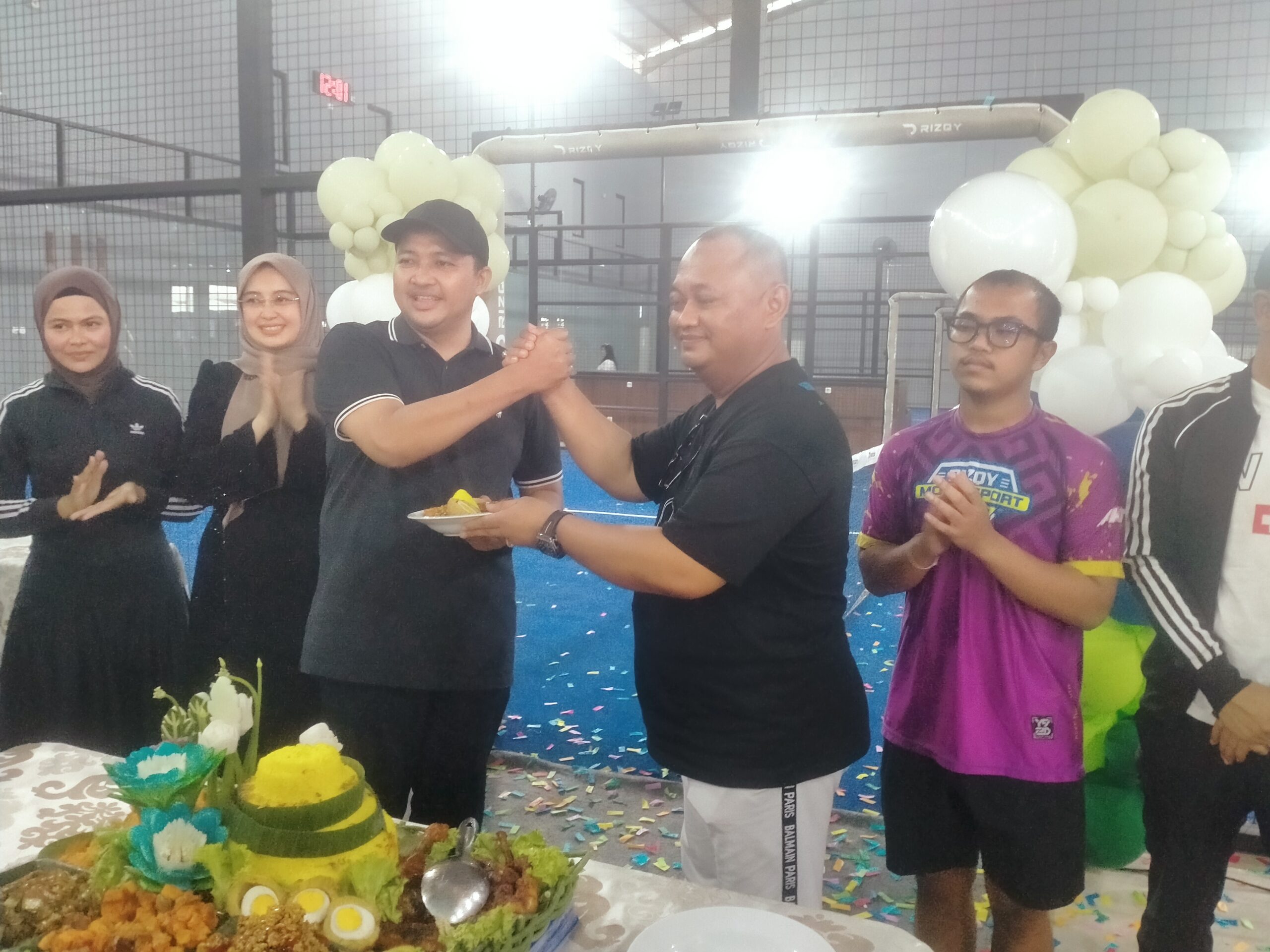Setelah acara seremonial telah usai, pemilik Rizqi sport centre Abah Rohmawan memotong tumpeng yang diberikan kepada Bupati Pasuruan H.M.Rusdi Sutejo. Nampak hadir juga sejumlah pejabat Forkopimda Kabupaten Pasuruan, di antaranya Ketua DPRD Kabupaten Pasuruan Samsul Hidayat serta Kapolres Pasuruan AKBP Harto Agung Cahyono,…izz