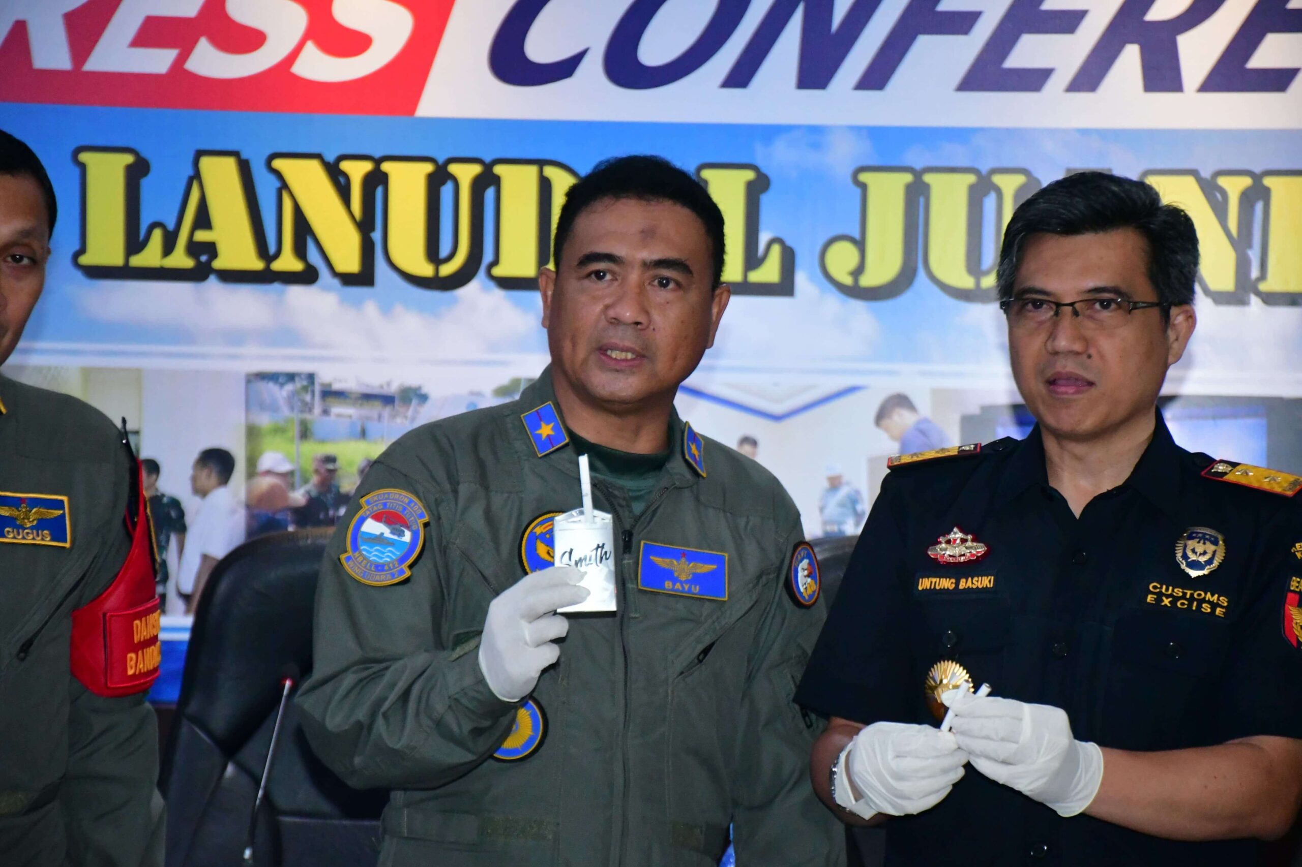 Pada sesi Press Conference tersebut, Komandan Puspenerbal didampingi Kepala Kantor Wilayah Bea dan Cukai Jawa Timur I, Untung Basuki, GM Angkasa Pura Indonesia Kantor Cabang Bandara Internasional Juanda, Laksma TNl M. Tohir, Danlanudal Juanda, Kolonel Laut (P) Gugus Wahyu. S.U, Dansatgaspam Bandara Internasional Juanda, Letkol Laut (P) Rai Terianom, Dandenpom Lanudal Juanda, Letkol Laut (PM) Aris dan Branch Cargo Services Assistant Head.