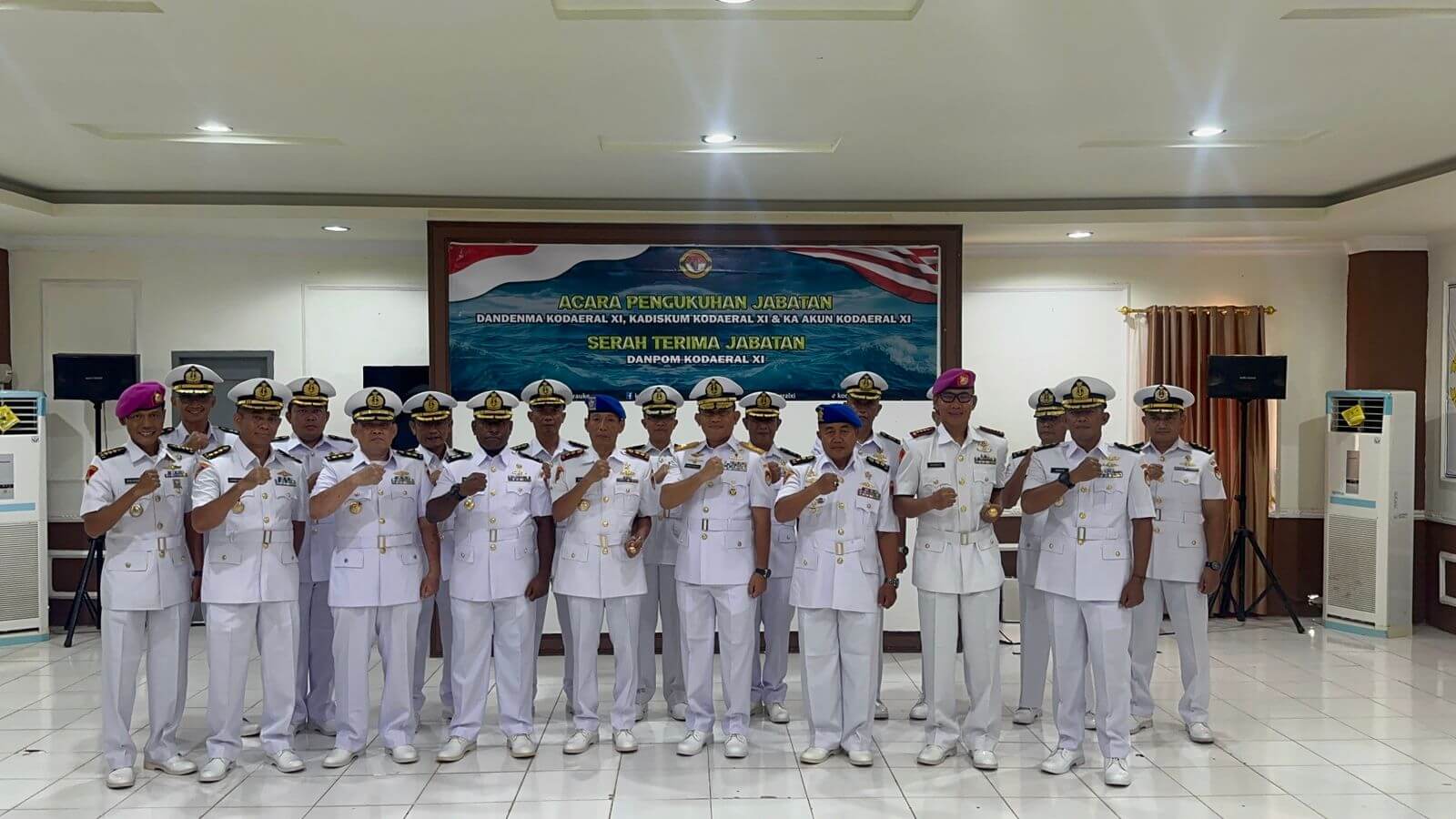 Dalam kegiatan tersebut dilaksanakan pengukuhan jabatan Komandan Detasemen Markas (Dandenma) Kodaeral XI, Kepala Dinas Hukum (Kadiskum) Kodaeral XI, serta Kepala Akuntansi (Ka Akun) Kodaeral XI. Selain itu, juga dilaksanakan serah terima jabatan Komandan Polisi Militer (Danpom) Kodaeral XI sebagai bagian dari proses regenerasi kepemimpinan yang bertujuan menjaga kesinambungan pelaksanaan tugas dan tanggung jawab organisasi.